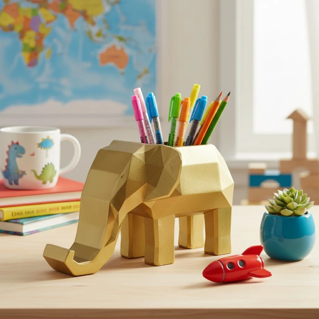 The Guérip Geometric Elephant Desk Organizer is built around this idea. Inspired by the elephant - a symbol of wisdom, stability, and strength - this sculptural piece transforms everyday clutter into something intentional. Its geometric, polygonal form gives it a modern edge, while its posture feels calm, grounded, and reliable.